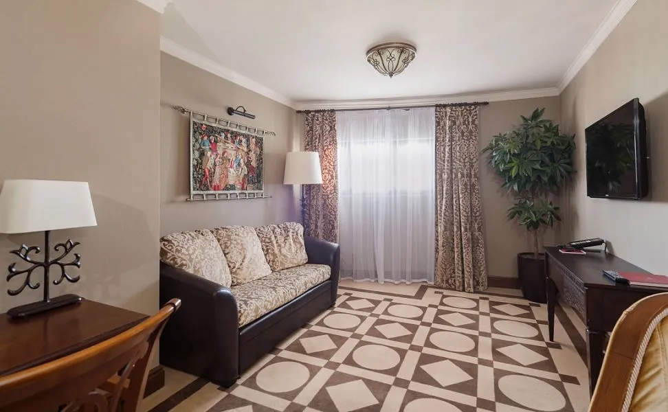 Люкс оснащен всеми современными удобствами, которые сделают ваш отдых максимально комфортным. В его стоимость включены завтрак и ужин по системе «шведский стол», детский клуб «Карусель», Wi-Fi. Действуют специальные условия на посещение Сочи Парка.